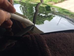 衝撃点が尖っていて、極力残らないように丁寧に広げながら押し上げました。
